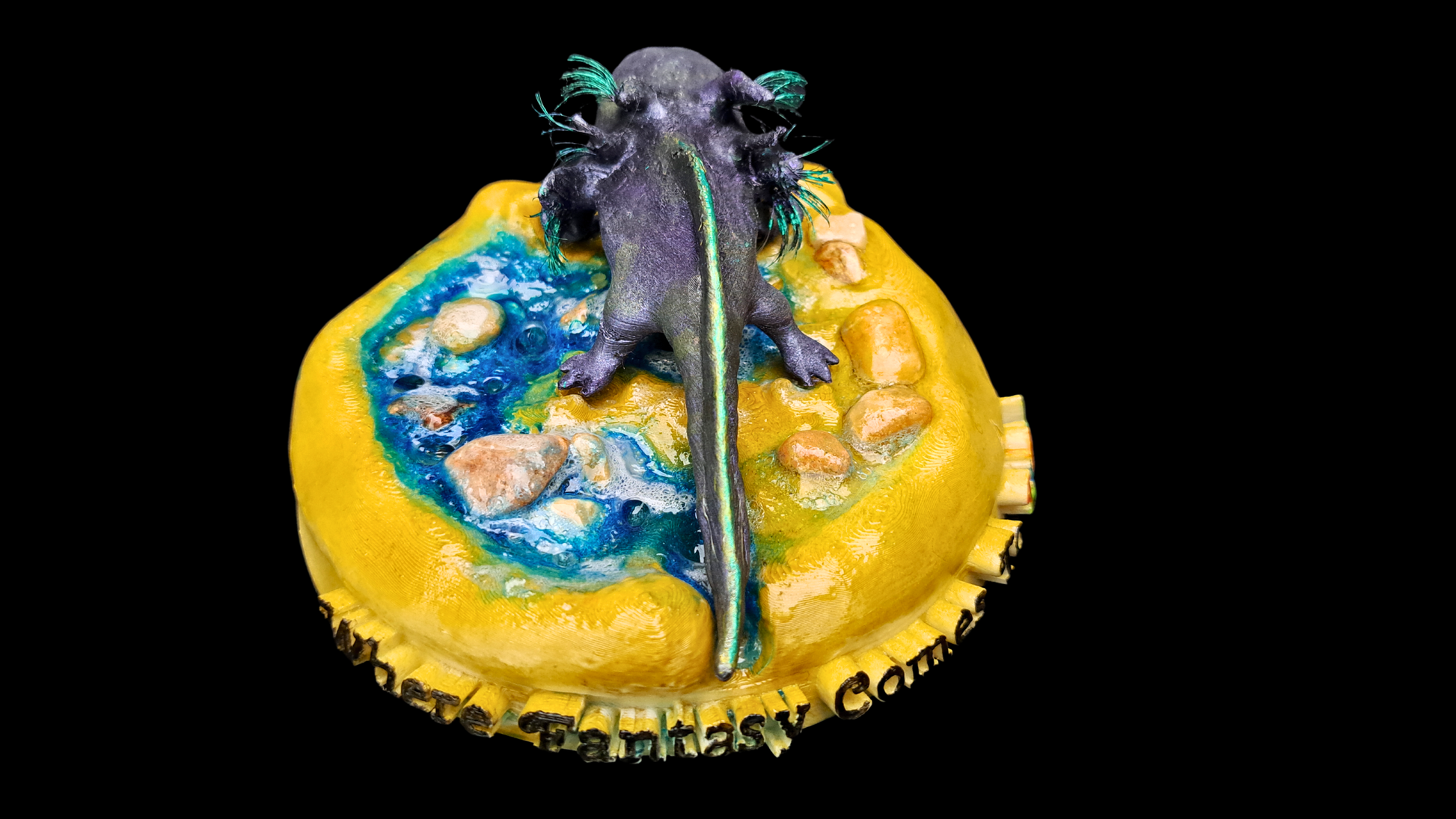 - Two-part modular diorama — Axolotl figure and interchangeable habitat base