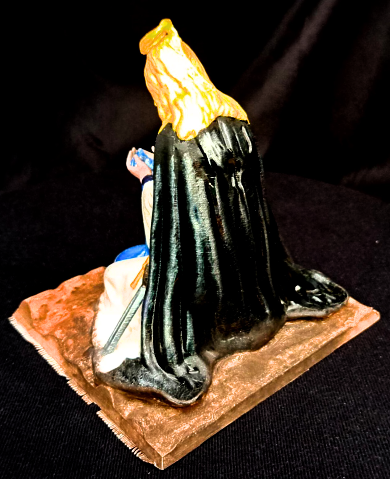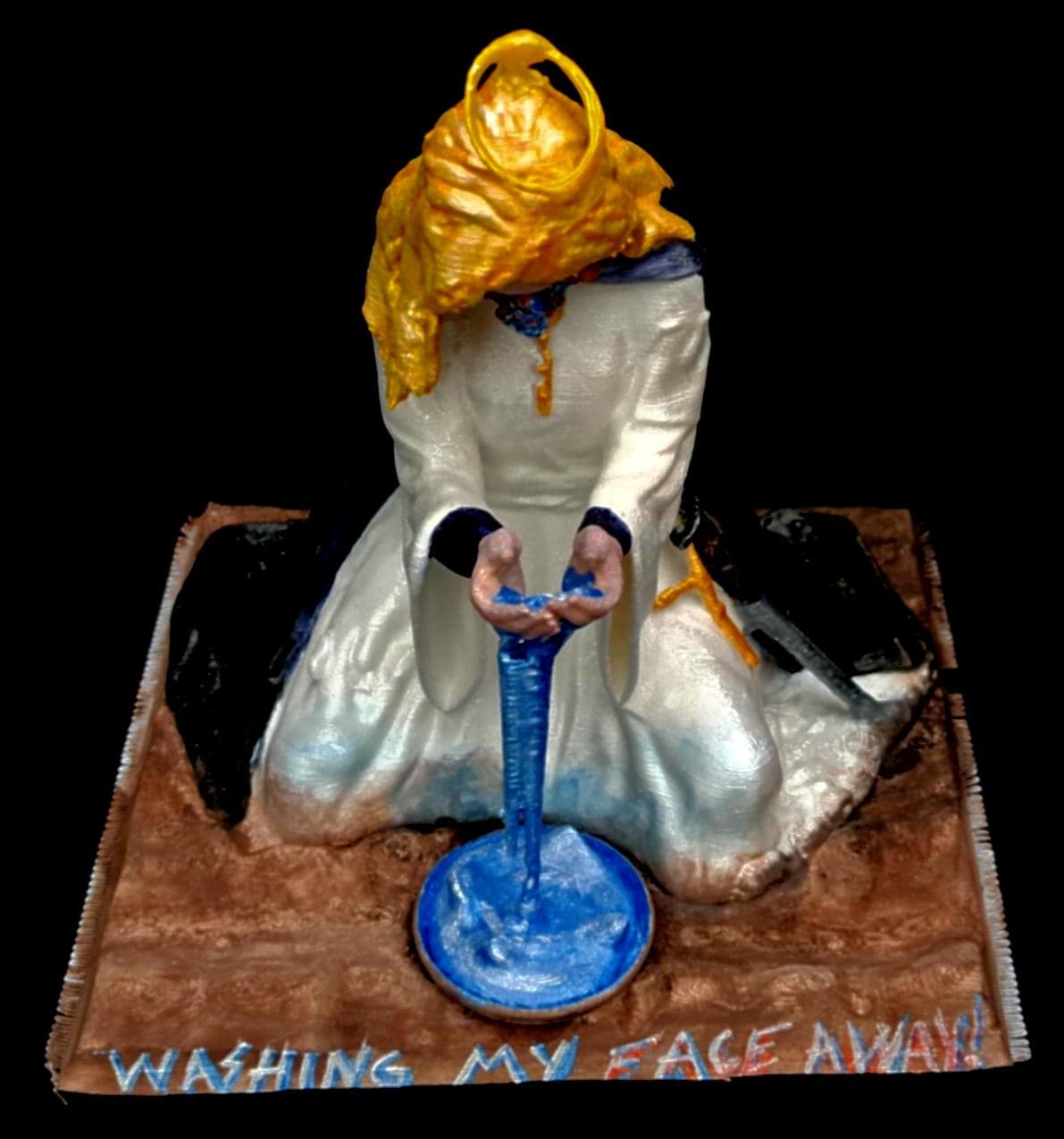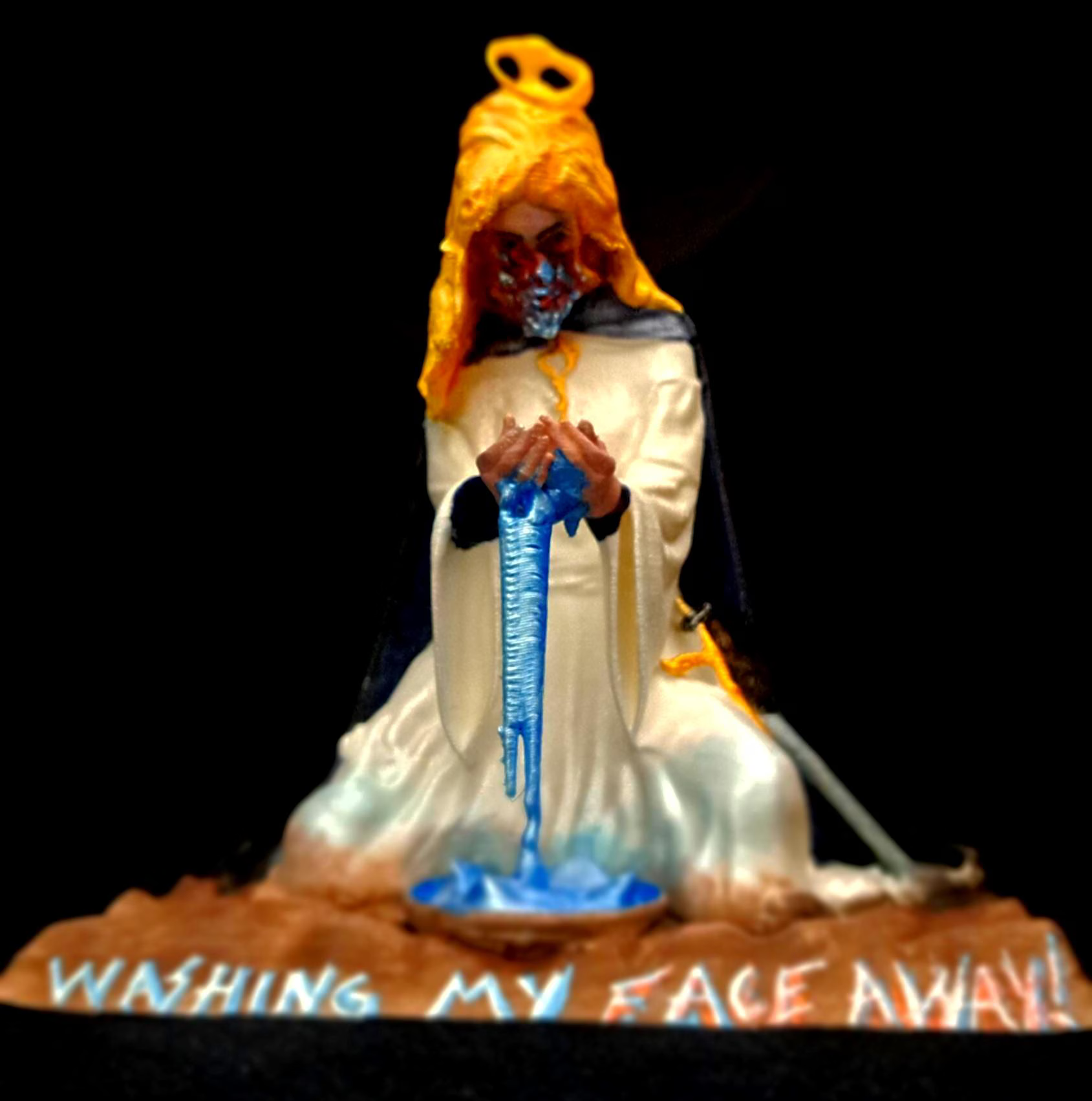 Each *Sister Celeste* sculpture is an **original creation** by the artist, starting with **digital modeling** in Meshmixer, refined and printed in **high-quality PLA filament**. The model is **hand-assembled, re-sculpted**, and detailed with sculpting pastes and modeling compounds. The surface is **primed and hand-painted** with multiple layers of **acrylic paints** to achieve a luminous, ethereal finish that captures the divine transformation.