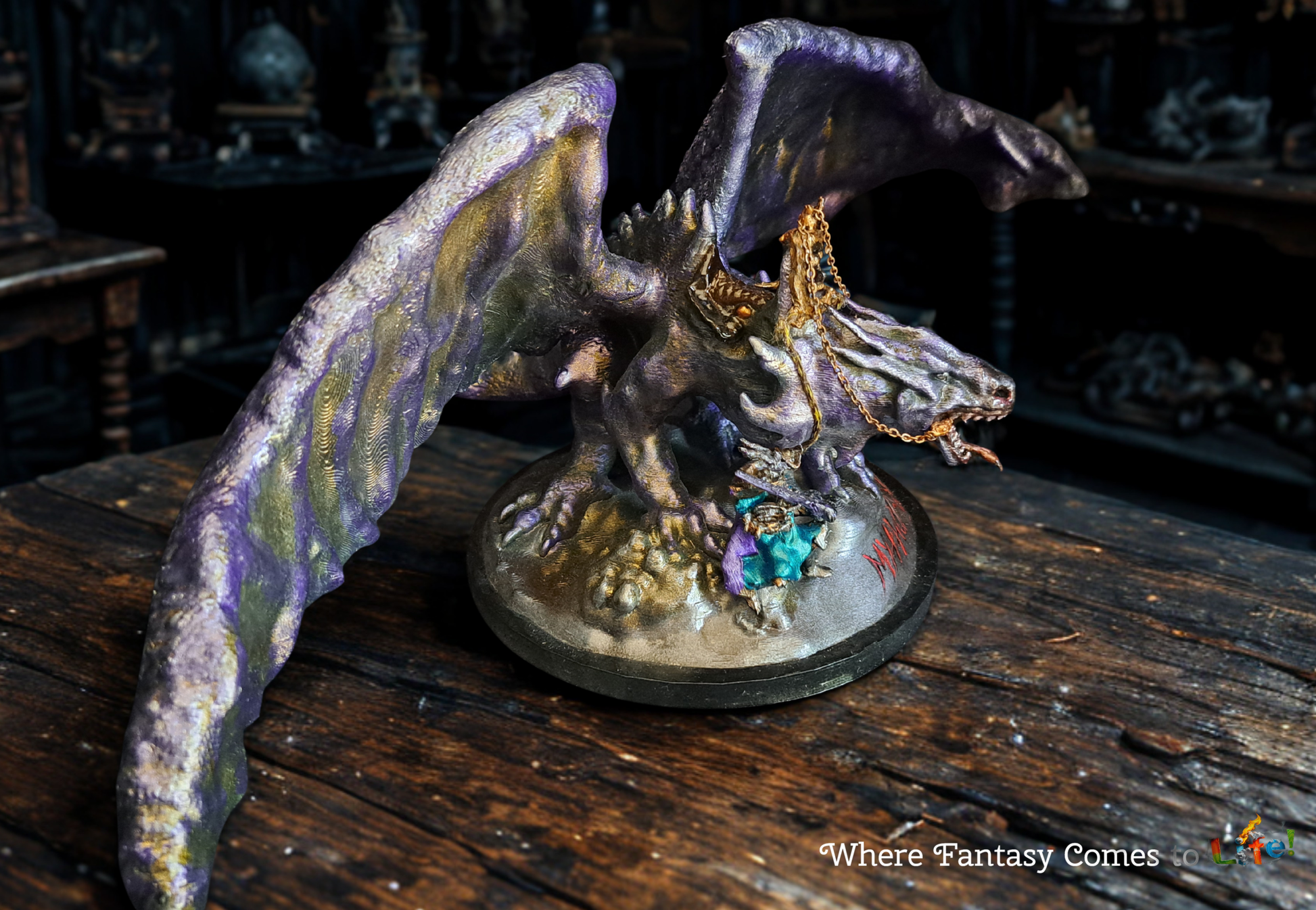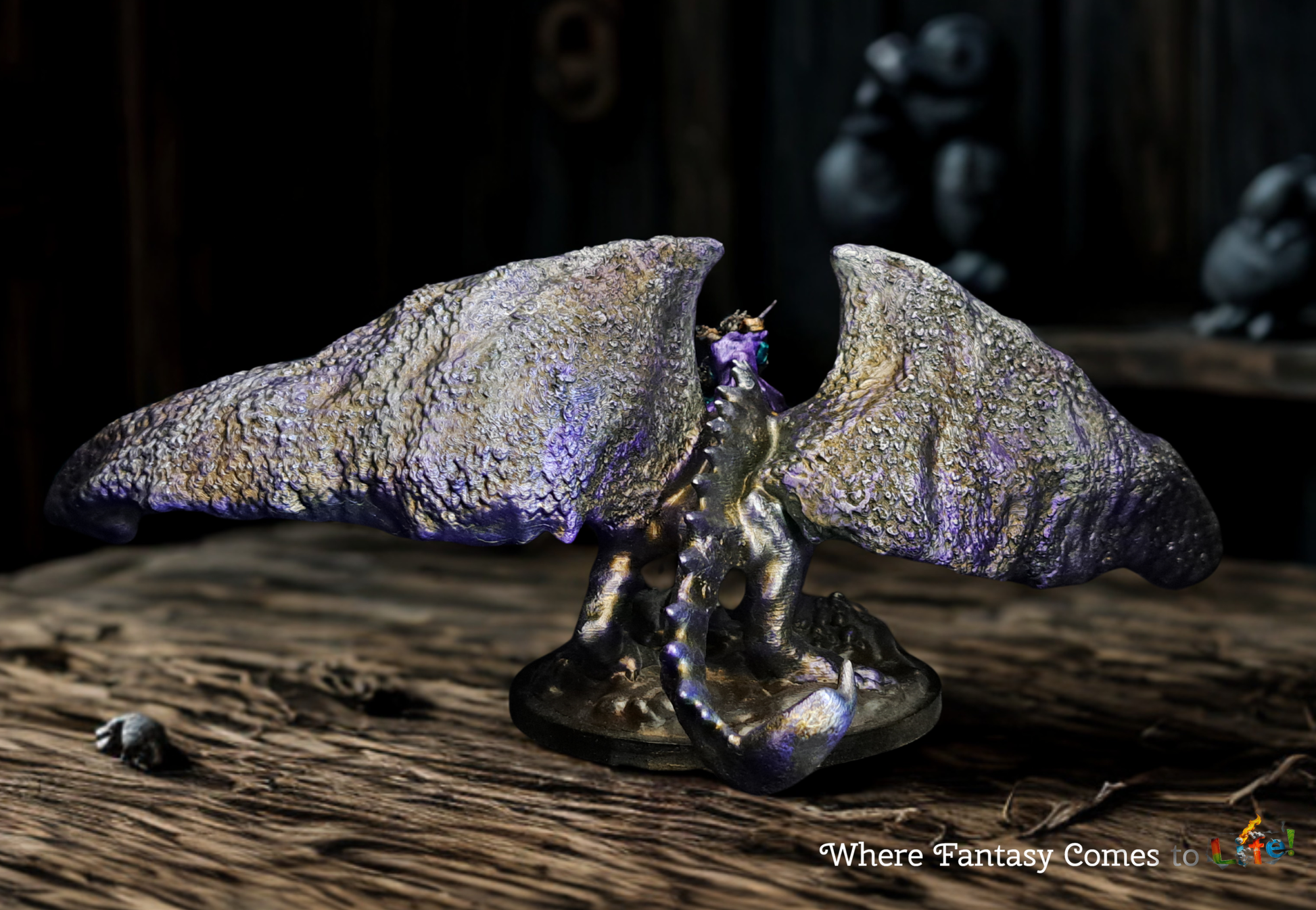 Thyralax’s flight is more than just an escape; it’s the culmination of a life spent in service of the world and his rider. The wings that carried him through countless battles are now heavy with the weight of endings, and the rider — whether atop the saddle or sitting beneath — understands the inevitability of the journey. The diorama represents both an ending and a beginning, as they soar together one last time, the dragon’s flight echoing across the sky.